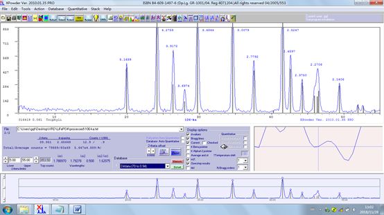 案例分析1 磷酸铁锰锂电池电极材料分析(Co - Ka) 使用奥林巴斯XRD分析仪BTX获取样品衍射图谱,使用XPowder软件对衍射图谱进行成分定性及定量分析。将下图块状样品研磨成粉末,使用样品筛进行筛滤,取筛滤后样品放入样品舱进行检测。 利用XRD分析某蓄电池在性能优异和性能差的情况下的电极材料,通过比较俩图谱可知,性能优异的电极材料中存在一种特殊形态的锡锑晶相,而性能差的电极材料中没有发现该锡锑晶体的存在。如果想方法能够提高这种特殊形态锡锑晶相的稳定性以优化电池材料,那么在很大程度上可以延长该类电池的使用寿命。