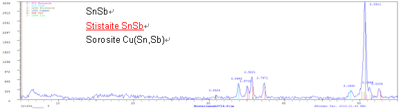 案例分析2 锡锑惨杂电池材料的稳定性分析 目前商品化的锂离子电池中使用的负极材料大都是碳材料。然而,信息化技术和便携式电子设备的发展对锂离子电池提出了更高的要求,迫切需要新型锂离子电池负极材料,其中锡与锡惨杂合金是很有希望取代碳负极材料的后选材料之一。 利用XRD分析某蓄电池在性能优异和性能差的情况下的电极材料,通过比较俩图谱可知,性能优异的电极材料中存在一种特殊形态的锡锑晶相,而性能差的电极材料中没有发现该锡锑晶体的存在。如果想方法能够提高这种特殊形态锡锑晶相的稳定性以优化电池材料,那么在很大程度上可以延长该类电池的使用寿命。
